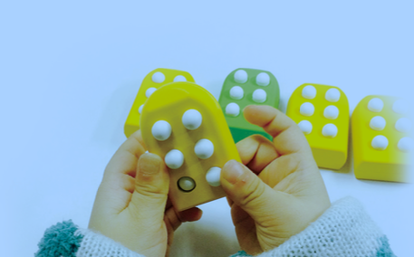 - 上排每一方點字可以拆卸下來,拼成想要的點字