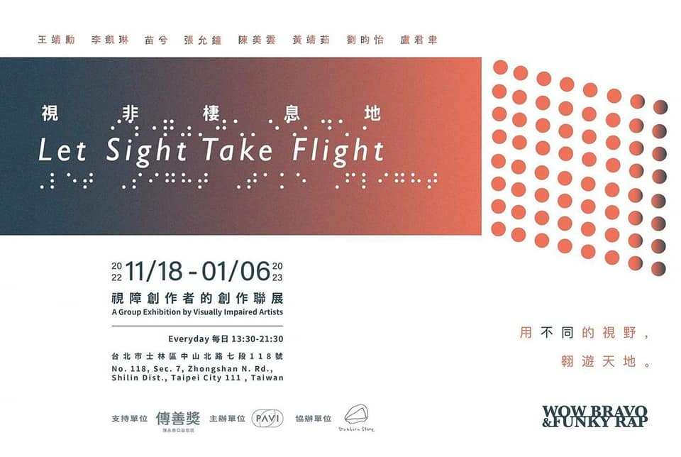 “視非棲息地” - 視障創作者的創作聯展開幕 +「全方位電豎琴創作女聲」蘇珮卿(Paige Su) _________________________________ WOW BRAVO & FUNKY RAP 展期:11/18-01/06 時間:13:30-21:30 地址:台北市士林區中山北路七段118號