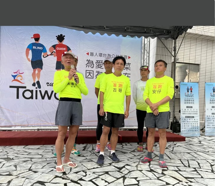 全程陪跑的台北市體育局前局長李再立說,去年12月24日從台北出發後,每天安排一個全馬的長度路跑,預計16天跑完全台,約600多公里,視障跑友很有經驗,自己就是「當他們的眼睛」,告知路上有哪些景色、路況等,但跑著跑著,反而變成「視障跑者帶著我們跑」。