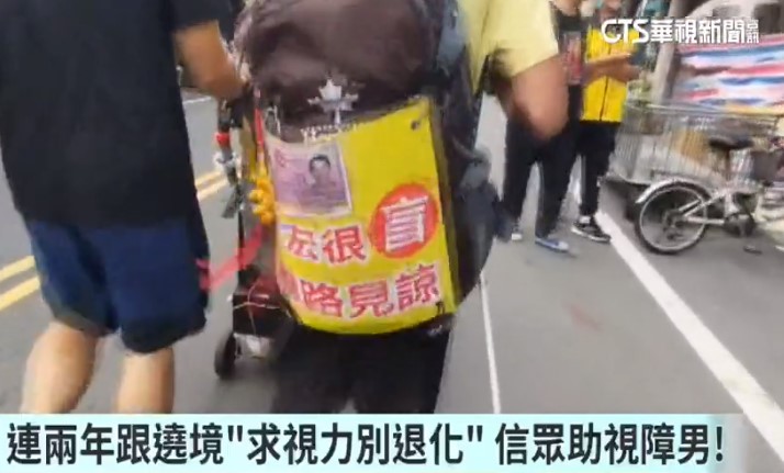 大甲媽遶境第3天,鑾轎走到雲林縣,沿路信徒除了熱情還很熱心,一名視障朋友阿宏,為了祈求視力不再惡化,連2年跟媽祖遶境,有信徒發現了他,主動跟在他身旁幫忙推車,引導過馬路。另外上次白沙屯媽祖進香,有名5歲男童背著紙板跟著鑾轎,祈禱生病的阿祖趕快好,這次他也有來,童言童語的說:阿祖有比較好了,但他希望阿祖可以更好,所以這次也來跟著大甲媽遶境。