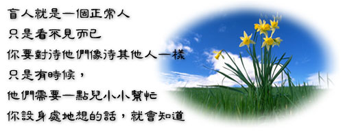 或尊重的地方?甚至您關心視障團體,有心想為盲友